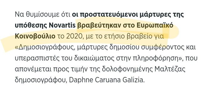 Στην σημερινή ανακοίνωση ο ΣΥΡΙΖΑ αναφέρει ότι οι ψευδομάρτυρες της Νοβαρτις βραβεύτηκαν στο Ευρωκοινοβούλιο το 2020 1)Ξέχασαν να αναφέρουν ότι βραβεύτηκαν απ’ το αριστερό κόμμα της Ευρωβουλής στο οποίο η πλειοψηφία είναι ο σύριζα.