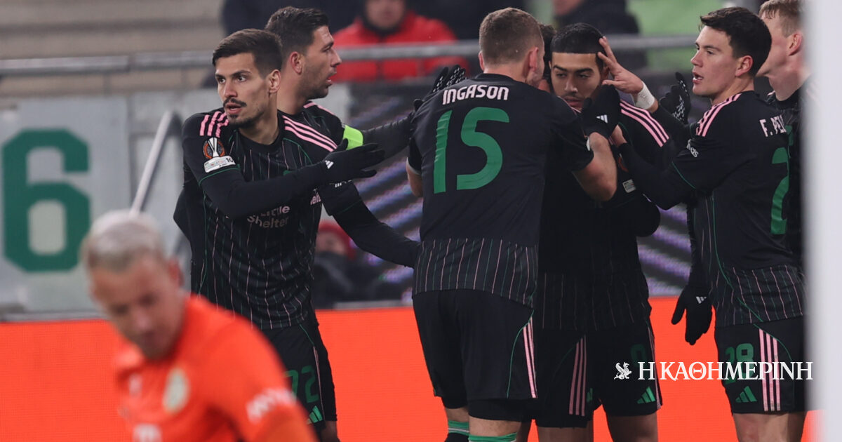 Την τρίτη νίκη του στη League Phase του Europa League πανηγύρισε ο Παναθηναϊκός επικρατώντας της Στουρμ Γκρατς με 2-1 στο ΟΑΚΑ στο πλαίσιο της 5ης αγωνιστικής, αναρριχήθηκε κι άλλο στη βαθμολογία κι έκανε ένα αποφασιστικό βήμα για την πρόκρισή του στα νοκ-άουτ της διοργάνωσης «κρυφοβλέποντας» πλέον ακόμη και την πρώτη οκτάδα που οδηγεί απευθείας στους «16». Το υπέροχο γκολ του Ντάβιντε Καλάμπρια στο 74’ χάρισε στον Παναθηναϊκό το μεγάλο «τρίποντο». Ο Σφιντέρσκι άνοιξε το σκορ στο 18’, ενώ η αυστριακή ομάδα ισοφάρισε με ένα τρομερό γκολ του Κιτεϊσβίλι στο 34’.…